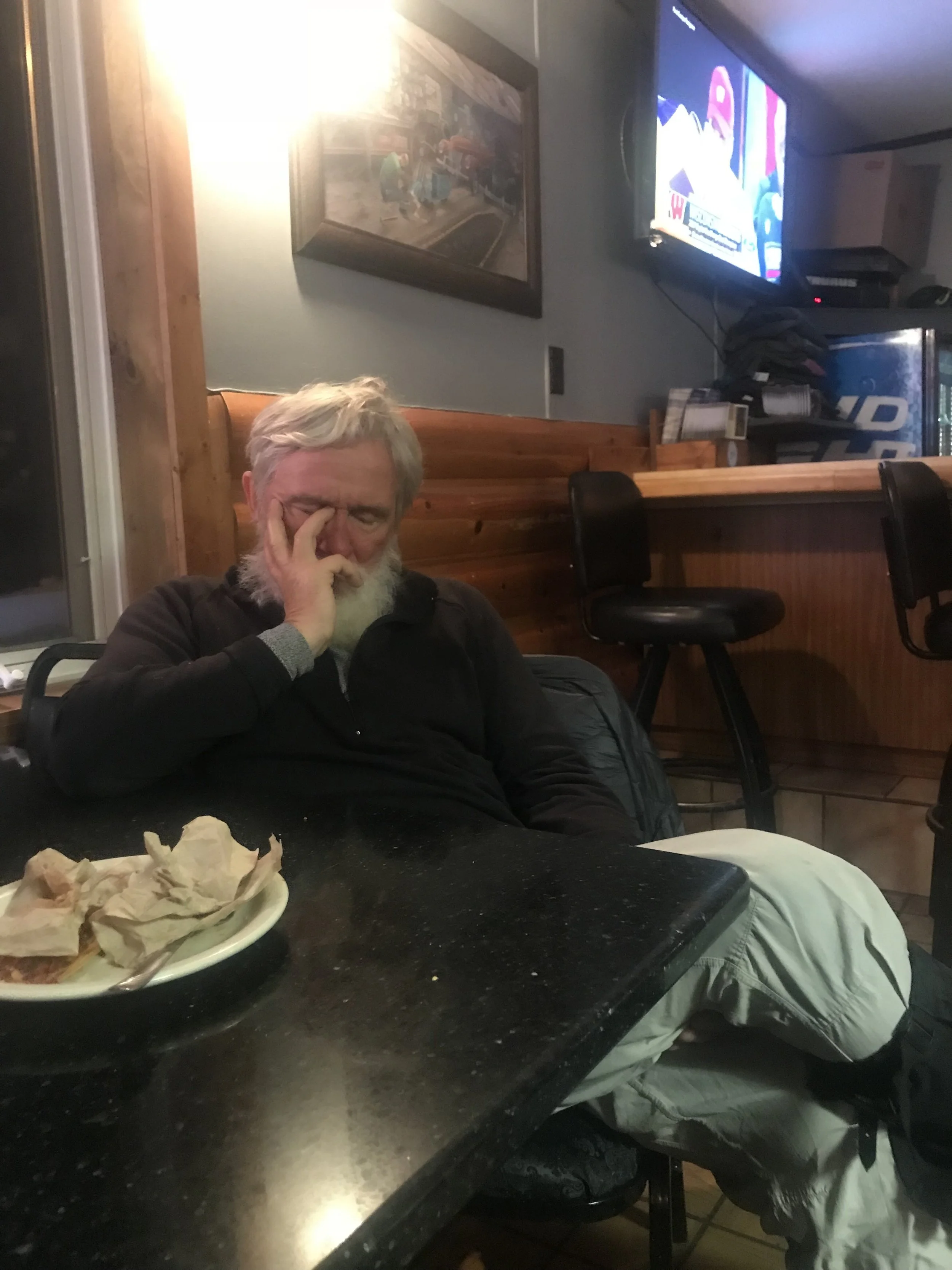 The bikers at the bar were DNFing and though the plan was to DNF at the half way point I didn’t see any reason why DNFing now versus then made any difference. I hung out for a while with them at the bar before Lester came in. Lester proclaimed girl I’ve been trying to catch you for hours! I laughed and said well here I am. He wanted me to walk with him to the half way point but I was done. I didn’t want to do hard things for the sake of them being hard. I didn’t want to suffer for the sake of suffering. I gave it a 20 mile go but I was over it. I loaded up with the bikers as Lester headed on. They took me to the aid station were I got to help other runners continue on or DNF. I had so much fun talk to people, hanging out, and drying clothing. Not for a second did I wish I had continued to march in the ridiculous cold. Plus how often do you get to take a ride in Randys mini van!?