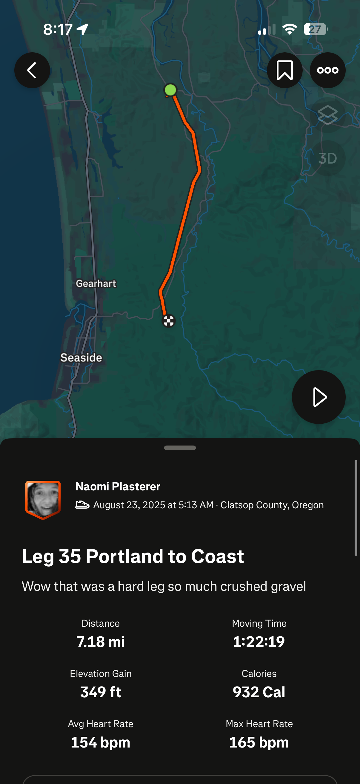 Naturally my legs felt like jello and hurt to walk the next few days. But I felt a new found confidence and began training entirely outside. Still embarrassed to be seen I picked a nearby dirt road and made my workouts in the morning. Following the training plan for the Portland to Coast that Carmen had given me. I incorporated intervals, sprints, tempo, and easy walks. With each walk I got stronger and more confident. When we made the transition to Wyoming I kept my routine. And even made sure not to miss a workout when I went to Madrid for work. Doing all my racewalks on the treadmill in the hotel. By this point I didn’t care if anyone saw me racewalking. By the time August came around and it was time to taper I had executed one of the best training blocks I had done in years! I felt strong and confident and wouldn’t have to rely entirely on my own stubbornness to get me through the race. I had a team of people depending on me and I didn’t want to let them down. I didn’t want to be the weak link. It was a new mentality I wasn’t use to. I wasn’t training for me. I was training for them.