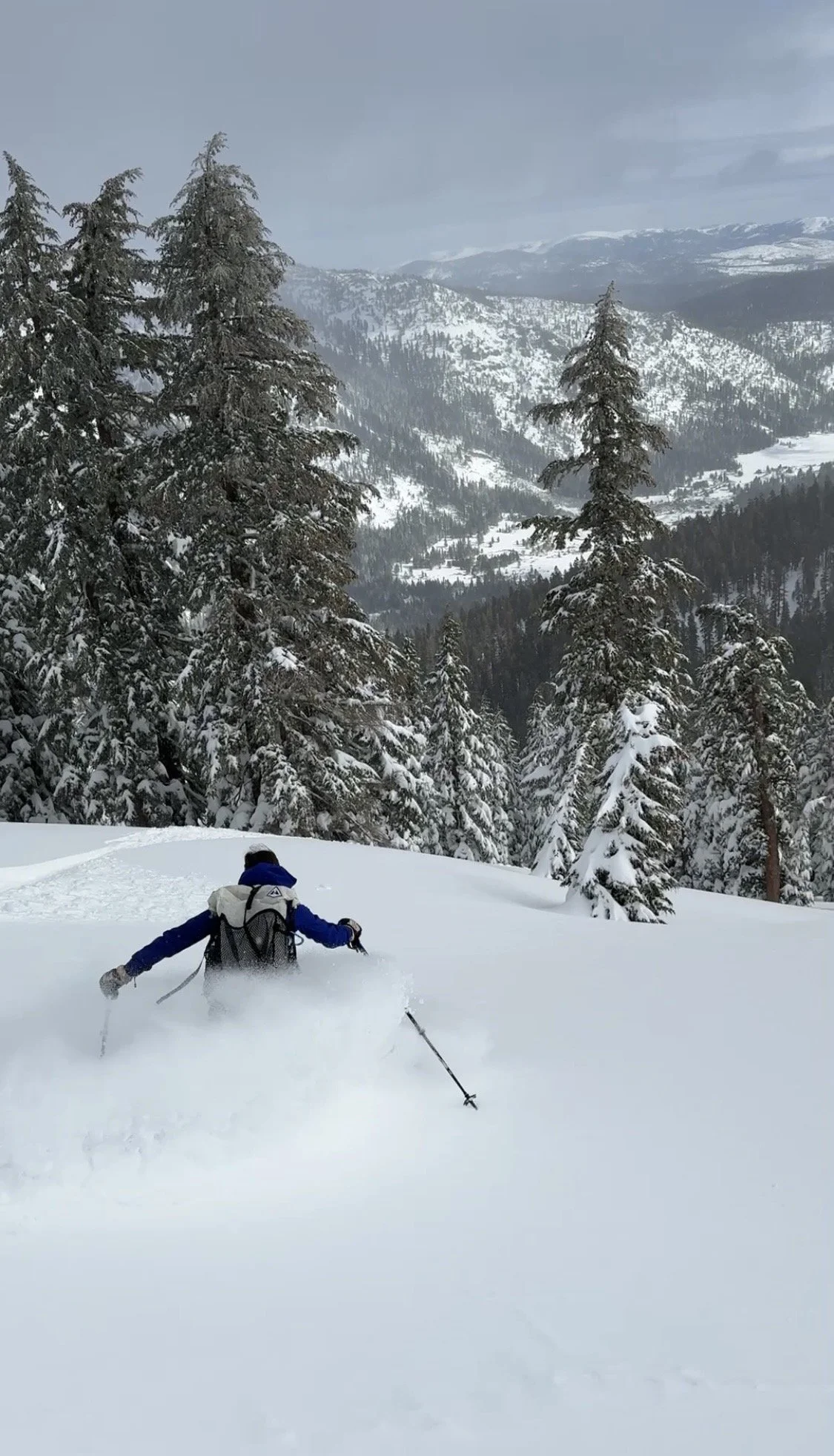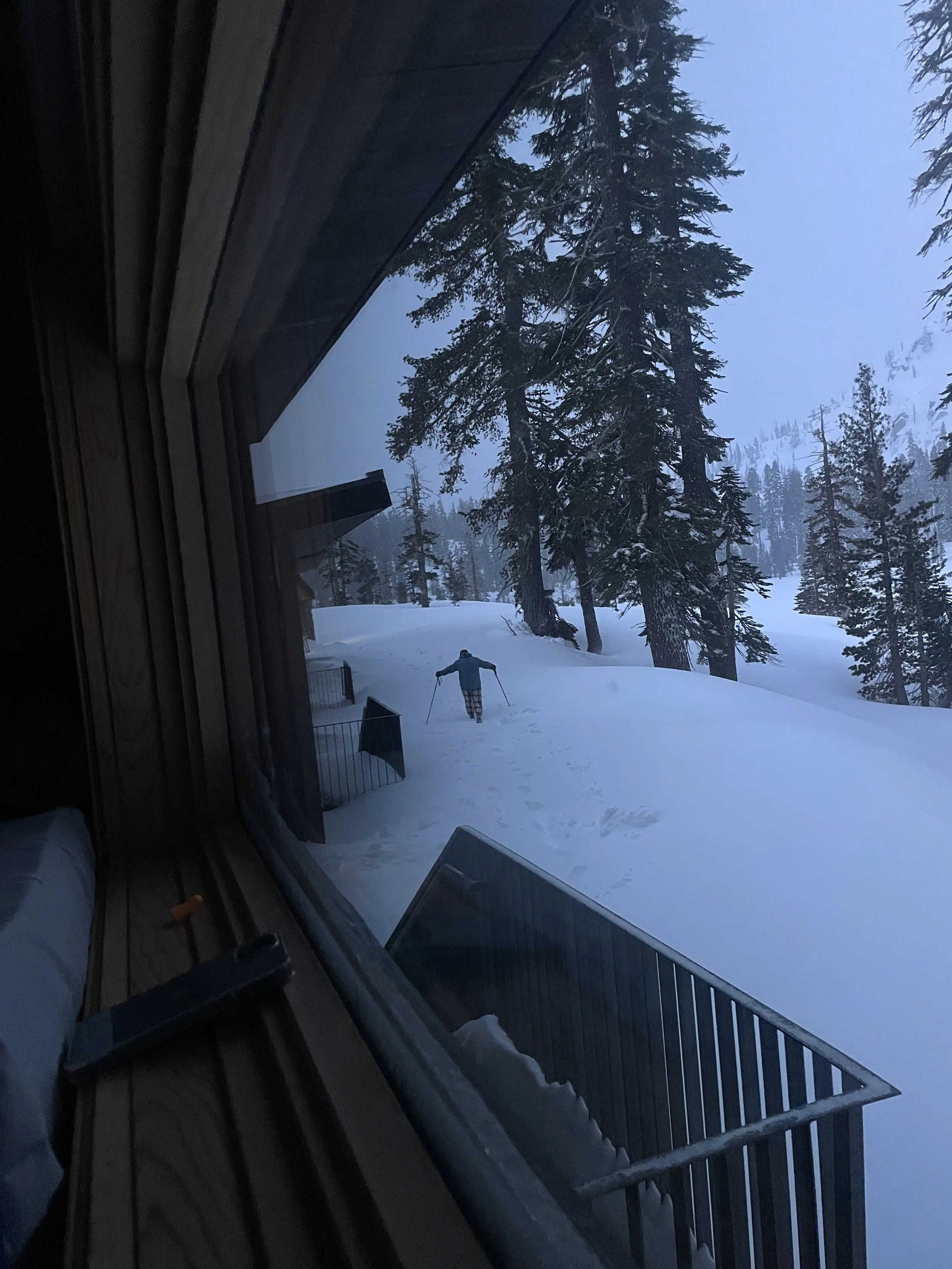 The storm continued. The next day turned bluebird and we skied one run in beautiful powder. It was fine. Good even. And then I sat in the hut and spiraled.
